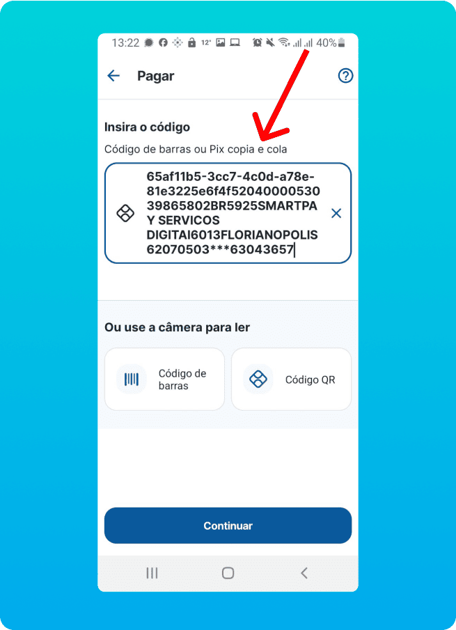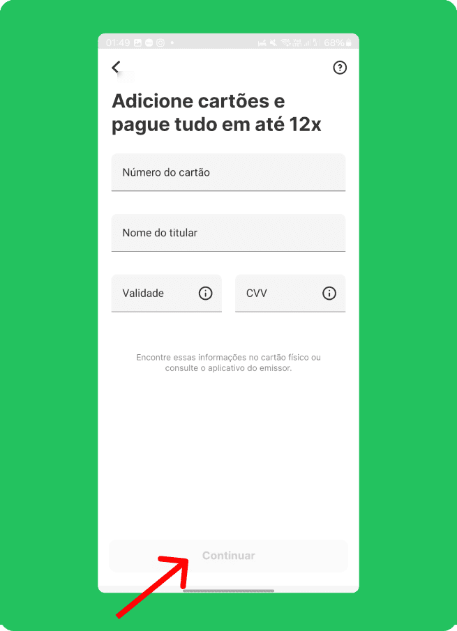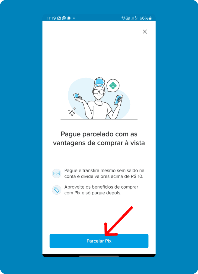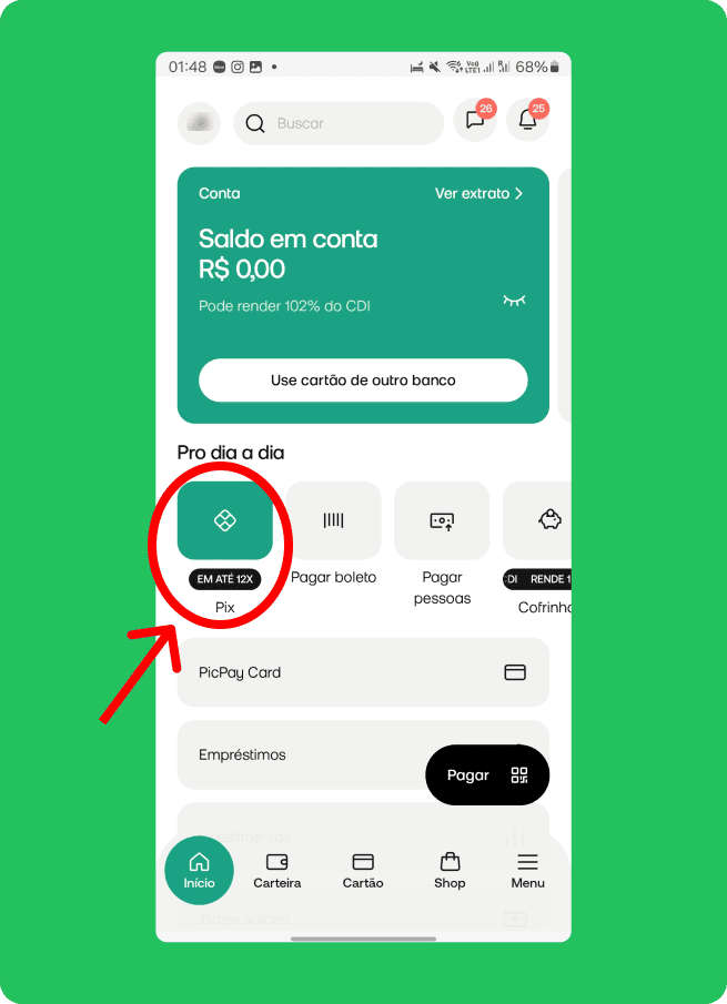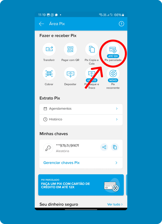Clique no aplicativo do seu banco e veja como realizar o pagamento via PIX no Cartão de Crédito.